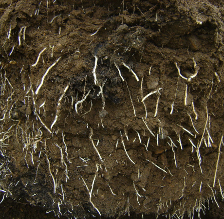 With the soil which normally surround the roots gently washed away, the dense, sturdy, fibrous root system of this air-pot grown tree is clearly revealed.