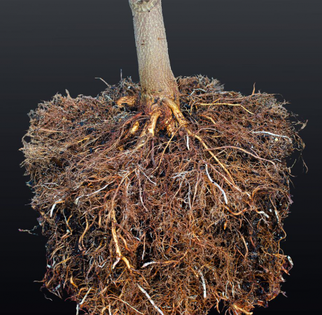 Over time (very little in our experience!) this process produces a highly robust, densely fibrous root system composed of thousands of water absorbing white tip roots. This abundance of white root tips is the revolutionary part of this production system. Whilst trees can conduct water through their entire root system, they can only absorb water through the tiny white root tips at the ends of each root, and water absorption is operation critical for a successful transplant. With such a robust root system, Air-Pot trees can be planted any time of year with a virtual 100% success rate; are the fastest and easiest trees to establish, and develop into far superior specimens over time.