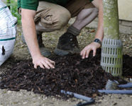 - Mulch finish – disturbed soil over tree pits is levelled and raked over then topdressed with bark mulch.