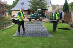 The machines required to plant large stock can cause some temporary disturbance to lawns etc. In cases where the disturbance is unlikely to recover naturally, or where there is risk of damage to hardscaping, the advisor will strongly advise use of matting. Matting may also be used at a customers’ request in order to preserve the lawn in (almost) pristine condition.