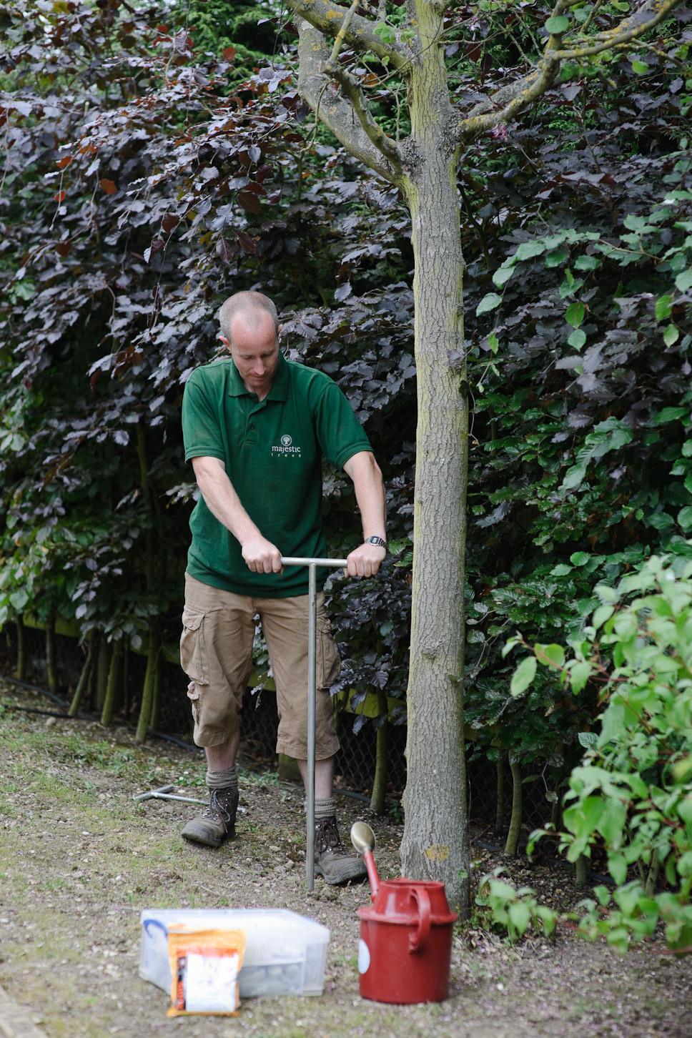 Fertiliser deficiency. We always plant our trees with fertiliser enriched compost along with slow release fertiliser tablets for the second year, so a tree which starts to look lacklustre down the line may be struggling to find the nutrients it needs in the native soil. To correct, you can begin by applying a general purpose top-dressing (see fertilising your trees). However, if the tree shows no quick improvement, we would strongly recommend you consider having the soil tested. By all means call us to discuss your tree and seek our advice, but inexpensive soil test kits are available at most garden centres, or more sophisticated soil testing is offered by professional organisations. A Google search for 'soil testing uk' should bring up a local provider.