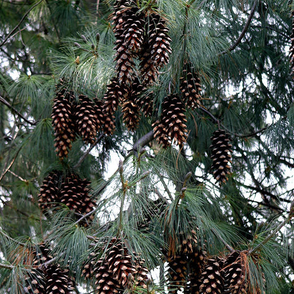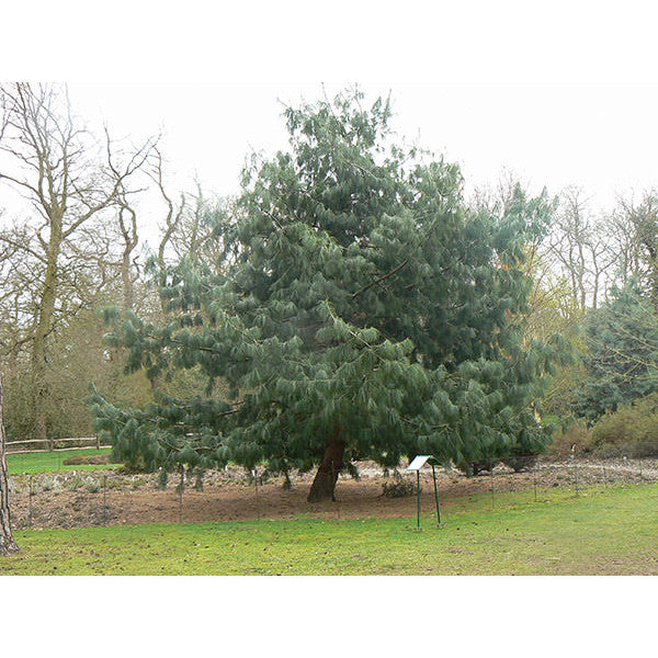 An elegant, large, broad-headed conical tree, retaining its lowest branches when isolated. Long, soft, blue-green, needles give a dreamy billowing texture and very large pine cones provide a seasonal interest. Moderately lime-tolerant but not recommended for shallow chalk. Flat far-reaching roots.
