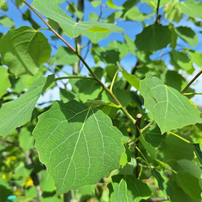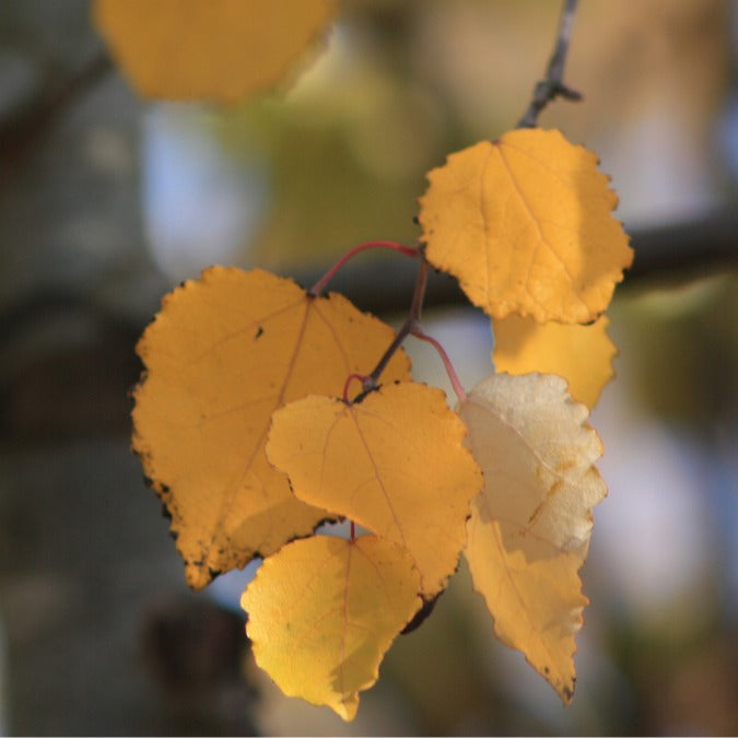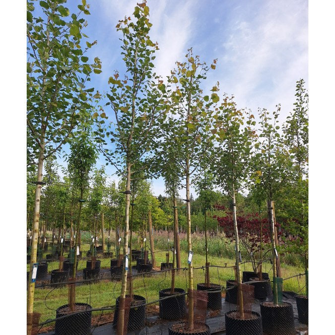 Deciduous. A medium to large sized, robust, quick growing native tree tolerant of wide variety of conditions, but especially at home around water. As such, you will often see them planted en masse around lakes, marinas, and reservoirs, their foliage rattling pleasantly in the breeze (hence the name). The leaves are prominently toothed, late in appearing and hanging late in the autumn when they turn a clear butter-yellow. Long grey catkins drape the branchlets in winter. Note: this tree suckers freely.