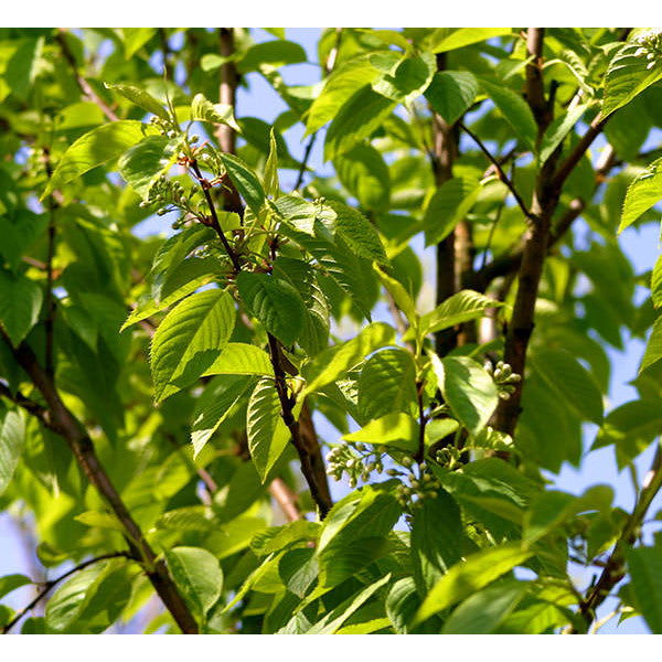 An ornamental cherry prized for its bark rather than its spring blossom. 'Amber Beauty' takes its name from its glossy golden bark which can be used to great effect when set against evergreens in winter, or to accentuate warm golden tones in garden timber, hardscaping, or planted beds. Broadly pyramidal crown. Small, single white flowers appear late April. Slow to moderate growth habit.