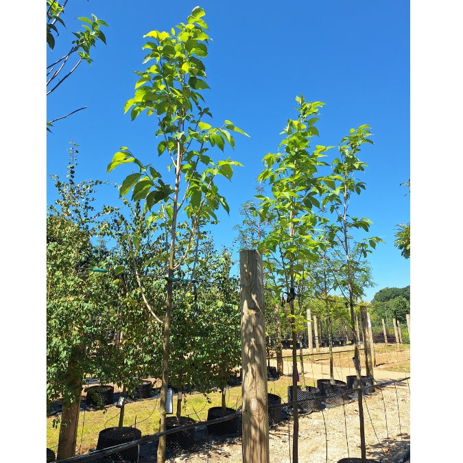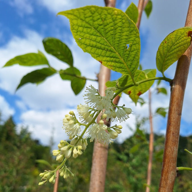 Native to China and Japan, this tree is most noted for its fragrant, fringed and bell-shaped white flowers borne in long pendulous clusters in early summer, reminiscent of epaulettes. Flowers are followed by ribbed fruits in drupes which persist through winter. Attrative ridged bark with age. Best in moist, well-drained acidic soil and full sun. H6