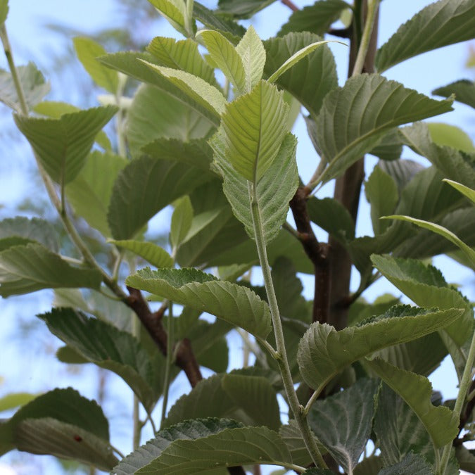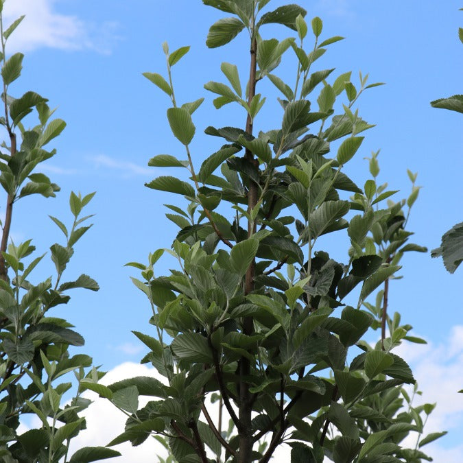 'Majestica' is, as the name suggests, a larger and more majestic cultivar of the species. In every other aspect it shares its appearence with Sorbus aria. The initially upright crown gradually spreads with age. Rich green leaves with a downy, white underside. White spring flowers followed by red fruits in autumn. An easy to grow tree. Hardy.